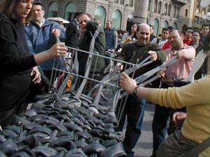 Se vuoi sapere che cosa significa questo paio di Brache, sappi che oggi, nel traffico urbano, il piccolo ciclista è come il David: ha da sconfiggere un gigante Golia, che è l'automobilismo prepotente e inquinante, paranoico e consumista.