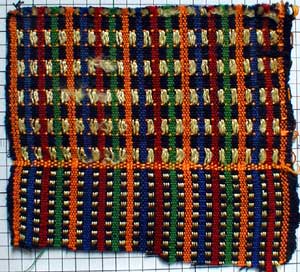 Nr. 057 name of the cloth - name of the weaver Jonas Atiavo year of weaving - tecniques kpevi, kogavi medium cotton, silk size (5 mm. grid) - count - meanings & history -