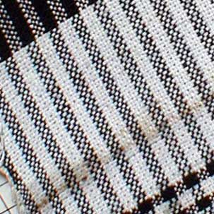 "Simple cloth of black warp wefted with yellow & brown.