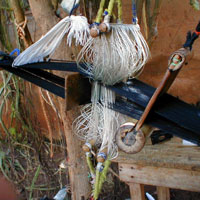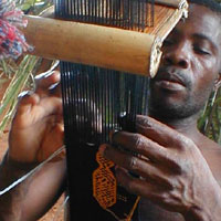 | Brocade design The art of design in weaving is called ADANU in Ewe language. Robert Aleawobu, weaving master of Klikor Icon is weaving Lisa (Camaleon). Klikor; Nov 2001 |