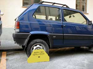 La campagna si arma di apposite Ganasce che applica sopra le ruote di auto- e motoveicoli in sosta. Le Ganasce sono realizzate riciclando delle cassette da frutta in cartone, sommariamente ritagliate e colorate in giallo. Hanno un forte impatto cromatico. A questo si aggiunge l'impatto emotivo che la Ganascia provoca nell'automobilista, sia proprietario di auto ganasciato o di passaggio o ingorgo sulla via. la Ganascia, per quanto di cartone, attira l'attenzione più di qualsiasi affissione, più di qualsiasi graffito murale.