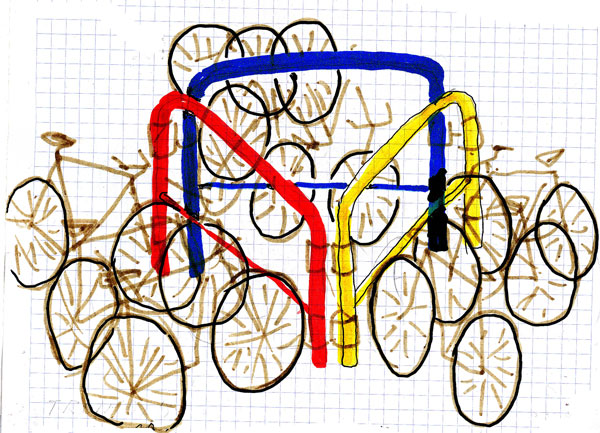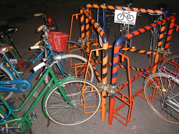 di Firenze con il contributo di molteplici ingegni In Comune si delibera che tutte le strutture in ferro dette "rastrelliere" e adibite al parcheggio delle bici sono passibili di un intervento artistico che non ne pregiudichi la ciclo-funzione. Qualsiasi cittadino, residente e non, ha facoltà di presentare un suo progetto artistico, rivolto o no a una determinata rastrelliera. Tutti i progetti pervenuti entro il termine saranno esposti al popolo, che sceglierà quelli da realizzare. Almeno 30 giorni prima dell'intervento, si affiggerà sopra la rastrelliera un cartello di cantiere, un disegno del progetto e la data fissata per lo sgombero delle bici parcheggiate. Le bici rimaste in parcheggio oltre il termine fissato per l'inizio dei lavori, saranno rimosse, revisionate o ribiciclate e distribuite al popolo, contestualmente all'inaugurazione delle opere, cioè presso le stesse rastrelliere. Ogni cantiere artistico deve concludersi entro 48 ore, riconsentendo ai ciclisti l'accesso e l'uso della rastrelliera. Le opere saranno inaugurate ciclisticamente come si conviene. Si fissa una scadenza di 2 anni per ogni intervento artistico, trascorso il quale periodo, la rastrelliera sarà normalmente riverniciata o sottoposta a un nuovo intervento artistico. Le opere assolutamente meritevoli di conservazione saranno sostituite da rastrelliere nuove e collocate nelle Ciclo Scuderie Leopoldina e Medicea, come patrimonio artistico da tramandare ai posteri. |