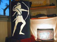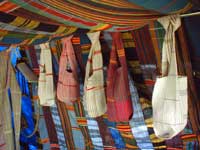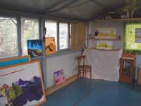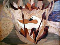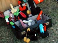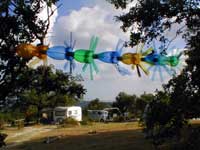 All'aperto: Veronika Fink lascia garrire al vento una girandola multipla in bottiglia riciclata , nonché più organiche composizioni mobili di ossi. Patrizia Melandri , sempre esagerata, porta tutto il suo bagaglio di Pupazzi Pallici e ne organizza pure un campeggio. Ivano Vitali impianta un gran campo di quotidiani, che lascerà maturare agli eventi atmosferici. Eva Basile prende a bastonate la lana delle pecore locali per convertirle all'arte del feltro. Nel Carrozzone: luminose applicazioni di stoffe ad intarsio di Jole Montani. Sempre intarsi (ma in legno) di Giorgio Barbero, nonché più corpose sculture (sempre in legno) Paesaggi maremmo - futuristici di Lapo Simeoni, dal suo misterioso periodo giallo. Putroppo, soltanto le foto dal laboratorio "Trapunte" del carcere di Livorno... le opere no, perché anch'esse detenute. Nel Tendone: afro-tessiture in canapa italiana di Luciano Ghersi, esposte al ritmo di canti dei tessitori a Klikor, che (per ques'anno) sono rimasti in Ghana... ma si stanno organizzando. Dopo la festa, tutto questo resta in mostra.. |