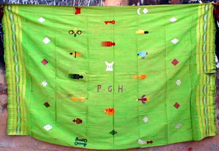 ![]() INGRANDISCI Raro esemplare di "Stoffa per donne" (Nyonuvo). 13 strisce in Rayon, cm 180 x 120 Dettagli del dritto e rovescio di Asi (Mano) broccata al modo antico. Un Nyonuvo è composto da 2 pezzi coordinati, questo pezzo è in Collezione D. Massiasta, il suo coordinato è in Collezione Afro-telaio - GHANA, Novembre 2001 1 - 2 - 3 - 4 - 5 - 6 - 7 - 8 |