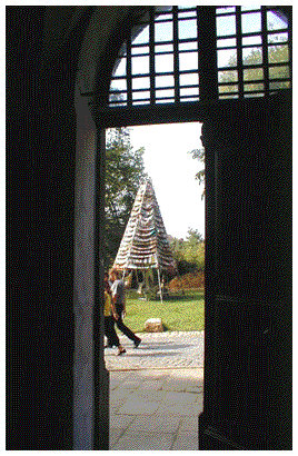This teepee shelters a BIZARRE HAND LOOM,