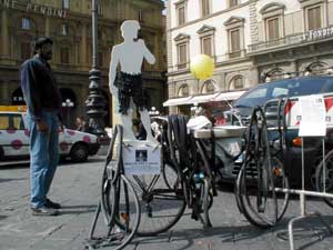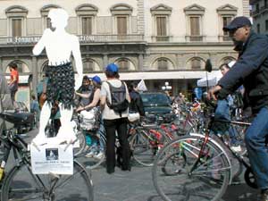 > Archivi > 1a Giornata per la Bicicletta Firenze, Sabato 29 Marzo 2003 Imponente raccolta di pneumatici presso il Modello Ciclabile del David, che accompagna la manifestazione.