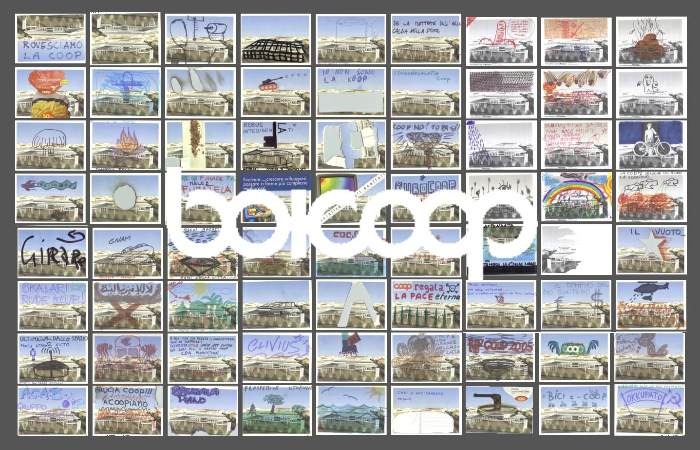 Tutte le opere sono state montate su un cilindro semovente, che transita per il quartiere, in compagnia di musicisti e teatranti, per la gioia del pubblico e senza disturbare il traffico. L'iniziativa, chiamata "Boicoopart", è promossa dall'Istituto Arti Pubbliche IAP, che ha lo scopo di promuovere un'arte fatta dalla gente, tra la gente e per la gente.