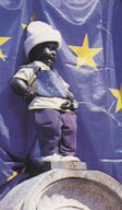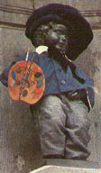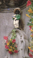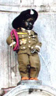 questo bronzeo pisciatore cambia vestito continuamente, per adeguarsi