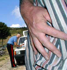 Infine, non posso evitare di segnalare (e denunciare) che il ns. amato "sponsor", intento a tessere Africa, manti sacri, eresie contadine e canapa nazionale, viene perquisito dalle forze dell"ordine"