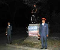 equestre ma ciclistico e illuminato. Lui pedala azionando una