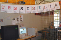 ![]() Leumann (TO), 29 settembre 2001 Ben 78 espositori a "Filo Lungo Filo...", settima edizione dell'annuale appuntamento dedicato alla tessitura a mano (e alle arti tessimili). ![]() Un pubblico sempre più variegato si accosta alla tessitura a mano. ![]() Il "Ragno Mediterraneo" (alias prof. Filippelli da Cosenza) "trattura" la seta dei bozzoli da lui stesso allevati. ![]() Tra i "tessìmili, un "Cappellaio Matto" al femminile: la mitica modista Carla Porri. ![]() K Chuöng, tessitrice Tai del villaggio vietnamita di Lat, con il suo telaio a tensione, per la ricchissima mostra sui tessuti del popolo Tai, allestita in Biblioteca. ![]() Meno ricca, e installata umilmente tra gli stand, la mostra "AFEVO" sui tessuti Ewe del Ghana,del Blakhud Museum di Klikor http://www.hypertextile.net/blakhud. Un telaio africano è in piena attività. Tutta la mostra "AFEVO" è però disponibile on-line su: http://www.hypertextile.net/afevo. ![]() Simonetta Battoia vince il concorso per il logo del Coordinamento Tessitori ![]() Non poteva certamente mancare Tessimilia, che presenta FotoTessere.3 |