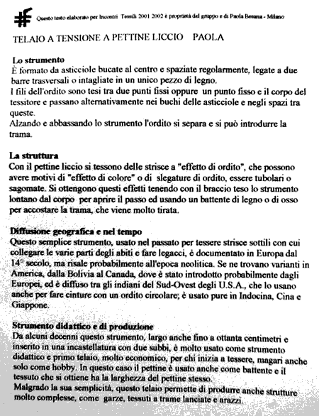 dimostrazioni di tessitura pettino-licciale (notare nelle foto,