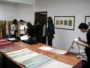 | Firenze, 18 settembre. La Fondazione Arte della Seta Lisio, nei suoi nuovi locali ristrutturati, ha presentato una scelta delle sue produzioni storiche e di saggi tessuti dai suoi studenti, assieme a moderni broccati per accessori di alta moda. Il pubblico ha assistito alla tessitura di broccati e velluti con i classici telai Jacquard a mano e alla realizzazione di campioni con il telaio elettronico. La Fondazione è aperta alle visite su appuntamento. via B. Fortini 143 - I-50125 Firenze TEL. ++39/055/6801340 - FAX ++39/055/680436 E-MAIL: info(chiocciola)fondazionelisio(punto)org www.fondazionelisio.org |