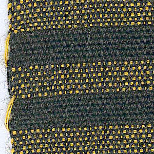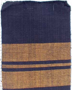"Simple cloth of black warp wefted with yellow & brown.