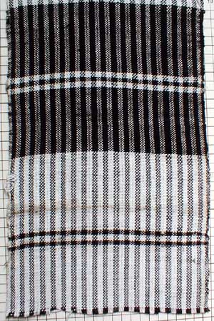 "Simple cloth of black warp wefted with yellow & brown.