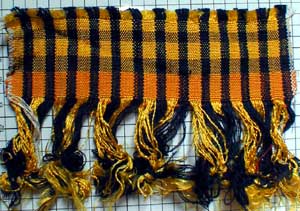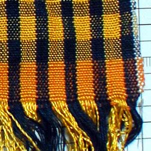 Nr. 077 name of the cloth - name of the weaver Kofi Agbenyeavuo year of weaving - tecniques vutsatsa medium deevoli, "silk" size (5 mm. grid) 120 x 40 count - meanings & history contemporary design