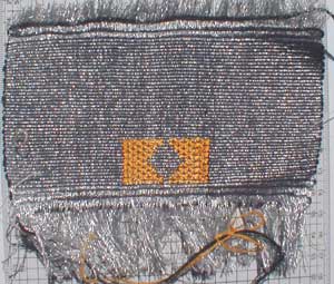 Nr. 125 name of the cloth - name of the weaver Ewe Weaver in Nigeria year of weaving - tecniques vutsatsa, adanu medium devooli, lurex size (5 mm. grid) 145 x 100 count - meanings & history -