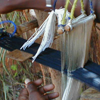 | Brocade design The art of design in weaving is called ADANU in Ewe language. Robert Aleawobu, weaving master of Klikor Icon is weaving Lisa (Camaleon). Klikor; Nov 2001 |