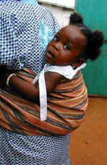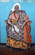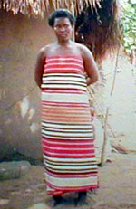 | Female Cloth A married woman officially wears two pieces, the second one being a sign of motherhood. "A complete NYONUVO (female cloth) is two pieces of the same cloth, each stitched with 12 to 14 strips, measuring about two yards by two and half yards (NYONU: woman + AVO: cloth)." (Ewe Glossary of Handweaving). |
