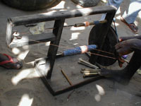 | Two Ply Yarn A special ETIEOMO (spinning mill) equipped with a reel spins KADADA (twisted yarn). KADADA warps are used to weave KADADAVOR. Weaver Doe Atimieku, Avloto (Klikor area), Nov. 2001 |