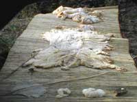 All'aperto: Veronika Fink lascia garrire al vento una girandola multipla in bottiglia riciclata , nonché più organiche composizioni mobili di ossi. Patrizia Melandri , sempre esagerata, porta tutto il suo bagaglio di Pupazzi Pallici e ne organizza pure un campeggio. Ivano Vitali impianta un gran campo di quotidiani, che lascerà maturare agli eventi atmosferici. Eva Basile prende a bastonate la lana delle pecore locali per convertirle all'arte del feltro. Nel Carrozzone: luminose applicazioni di stoffe ad intarsio di Jole Montani. Sempre intarsi (ma in legno) di Giorgio Barbero, nonché più corpose sculture (sempre in legno) Paesaggi maremmo - futuristici di Lapo Simeoni, dal suo misterioso periodo giallo. Putroppo, soltanto le foto dal laboratorio "Trapunte" del carcere di Livorno... le opere no, perché anch'esse detenute. Nel Tendone: afro-tessiture in canapa italiana di Luciano Ghersi, esposte al ritmo di canti dei tessitori a Klikor, che (per ques'anno) sono rimasti in Ghana... ma si stanno organizzando. Dopo la festa, tutto questo resta in mostra.. |
