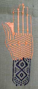 ![]() INGRANDISCI Raro esemplare di "Stoffa per donne" (Nyonuvo). 13 strisce in Rayon, cm 180 x 120 Dettagli del dritto e rovescio di Asi (Mano) broccata al modo antico. Un Nyonuvo è composto da 2 pezzi coordinati, questo pezzo è in Collezione D. Massiasta, il suo coordinato è in Collezione Afro-telaio - GHANA, Novembre 2001 1 - 2 - 3 - 4 - 5 - 6 - 7 - 8 |