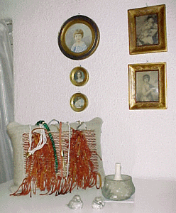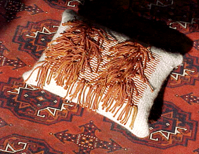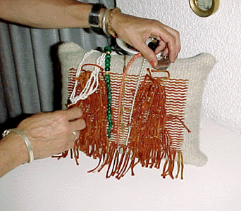 "Sul mio Cuscinoide Materico, ci appoggio le mie gioie." Questo Cuscinoide è tessuto con le reti da pesca. Quello di Spoerri invece, è tessuto coi calzini. |
