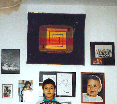 Andrea tra alcune sue opere e ritratti giovanili, sopra: prova di Video (1986) |