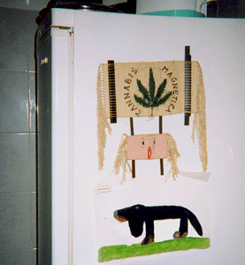 sul frigo (dall'alto): Cannabis Magnetica Textile Magnetic Attraction ritratto di Penelope