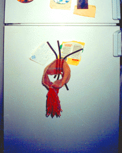 cucina sul frigo: Textile Magnetic Attraction (T.M.A. 1997) Il tessuto si annoda alle frange come un nastro di Moebius |